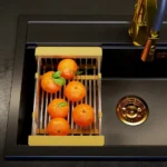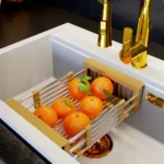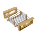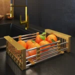 The telescopic basket is an invaluable addition to a modern kitchen, combining practicality and aesthetic design. Its telescopic design allows it to be adapted to various applications. It is ideal as a dish drainer, allowing water to be directed directly into the sink, which speeds up the drying process of dishes.