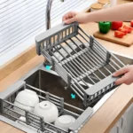 The telescopic basket is an invaluable addition to a modern kitchen, combining practicality and aesthetic design. Its telescopic design allows it to be adapted to various applications. It is ideal as a dish drainer, allowing water to be directed directly into the sink, which speeds up the drying process of dishes.