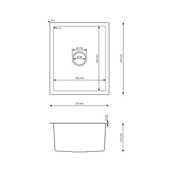 - Dimensiones del fregadero: 370 mm x 450 mm x 210 mm
